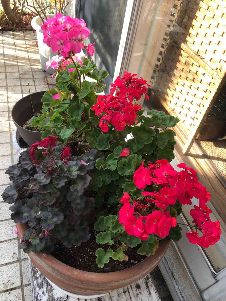 寒い中、ゼラニウムたちが綺麗に咲いています。