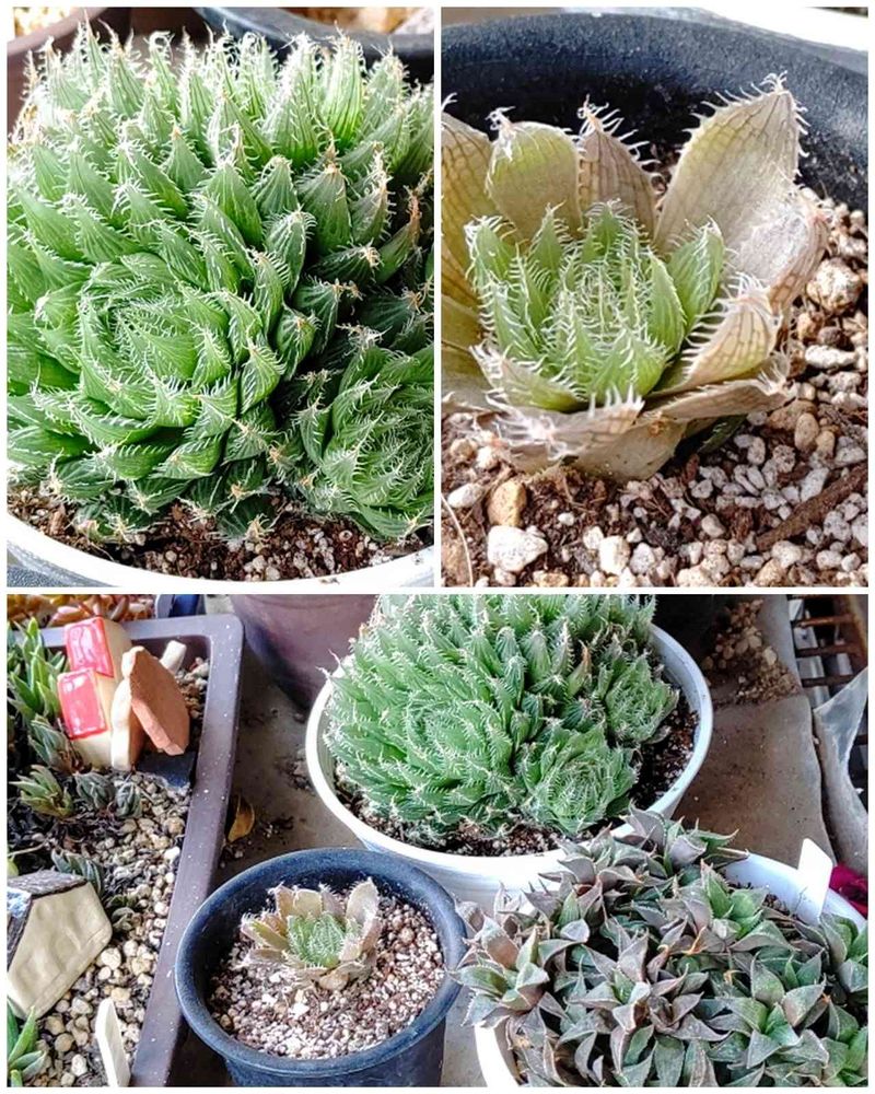 左上のハオルチアの子供を 一株だけ 試しに 植え変えてみました。😆