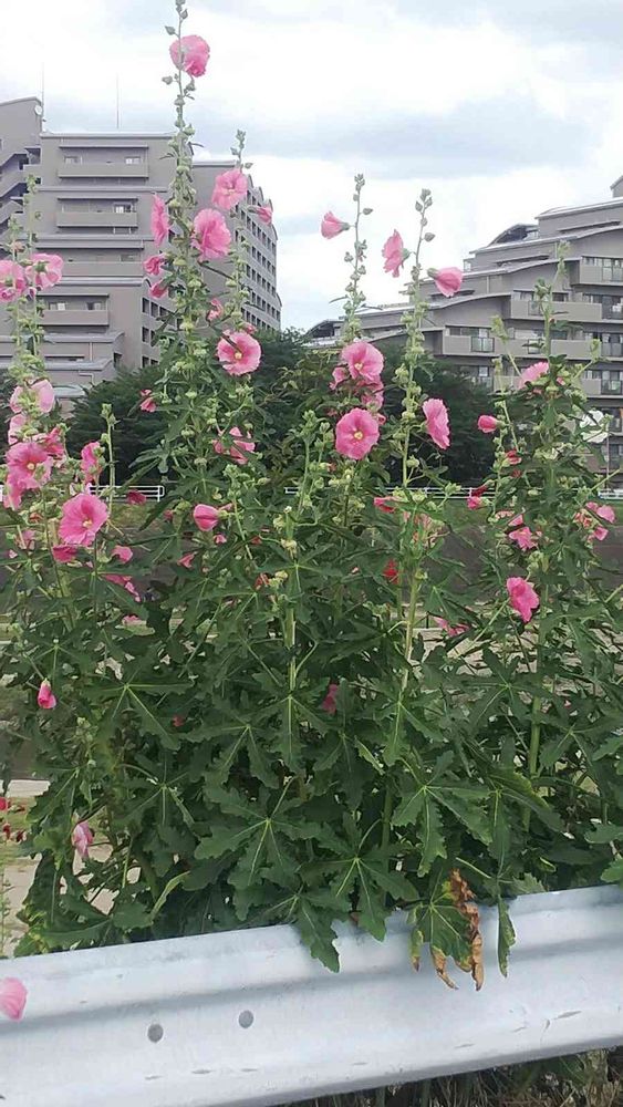 夏に堤防沿いを散歩した際、タチアオイがたくさん咲いていました😊