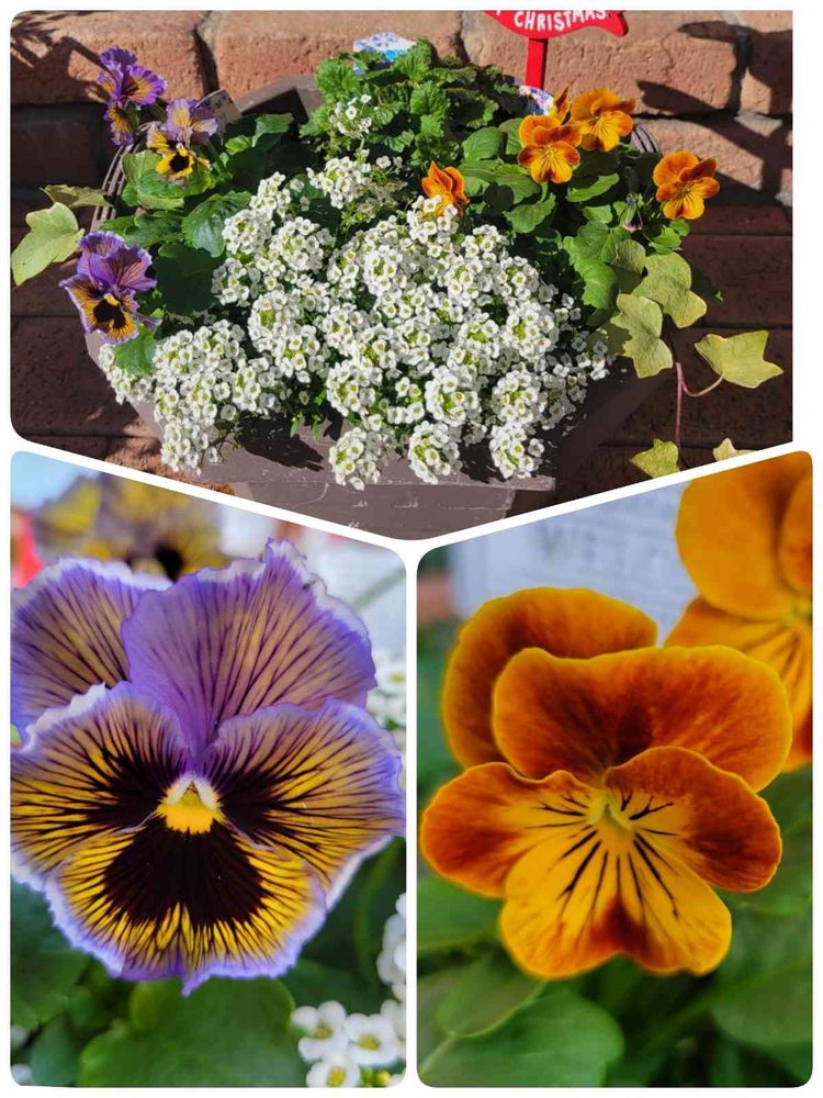 パンジー&ビオラの寄せ植え🌼ダブルデッカ-植え🍀紫のヒヤシンス&チューリップの球根と一緒に🌷