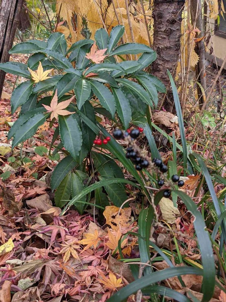 マンリョウに紅葉🍁の落葉!
