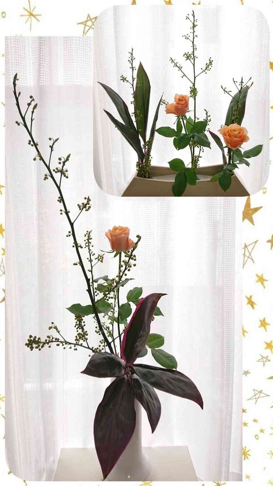 ↗️おけいこの残りで生けた ならぶかたち風🤭