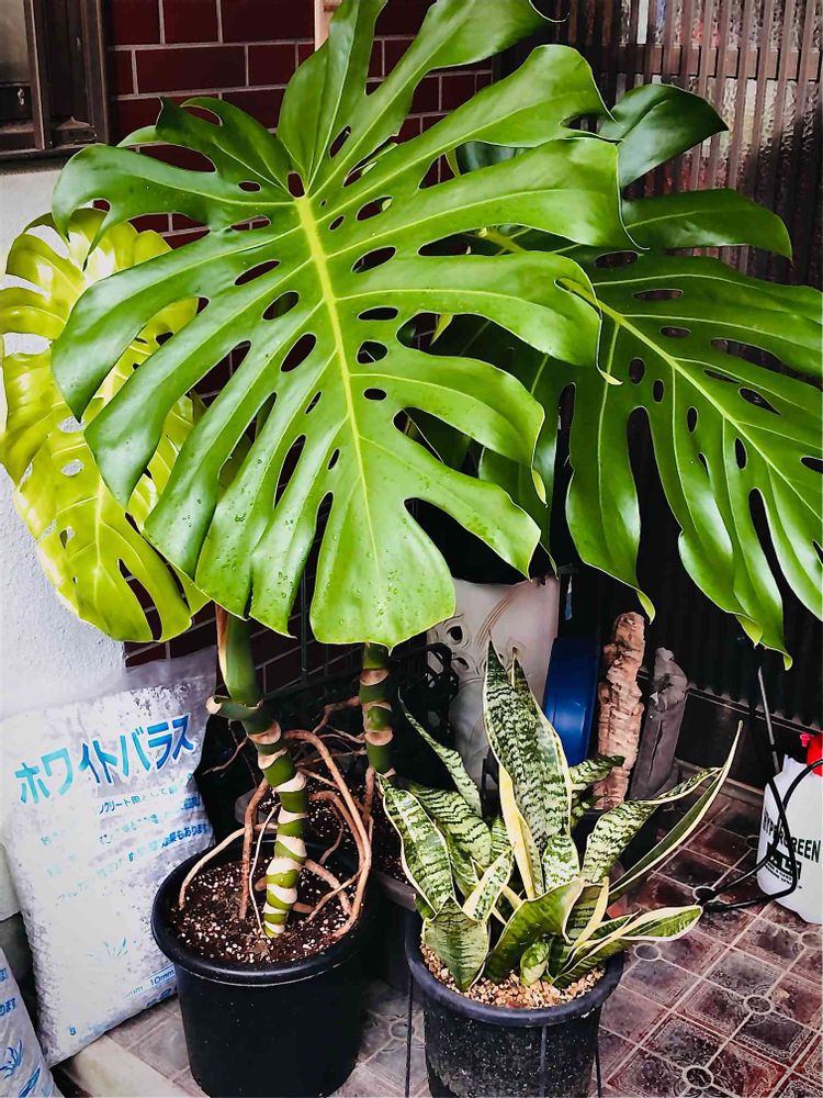 デカすぎて部屋に入れられなくなったモンステラとお友達のところに嫁に行ったサンセベリア😁