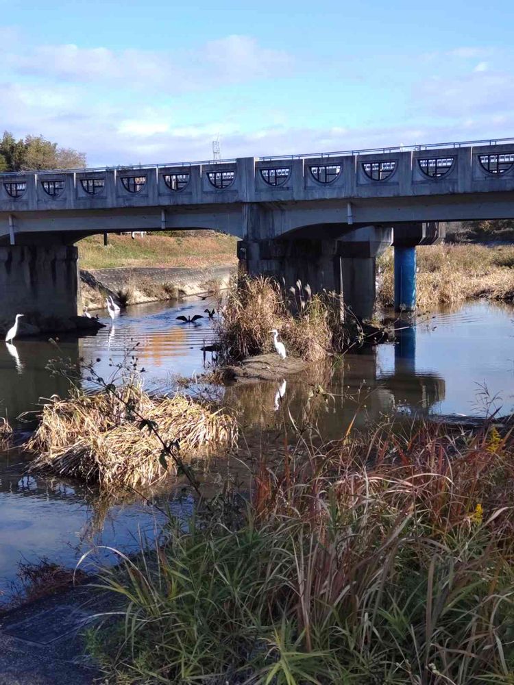 橋の下に白鷺達が くつろいでます🦢