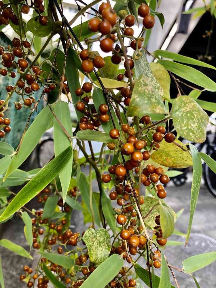 重たそうに見えるくらいたわわに実るヘクソカズラの実。