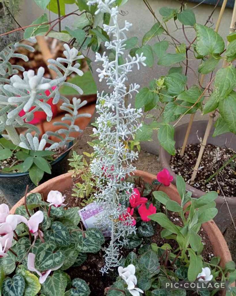 ガーデンシクラメンの中心に「コチア・ダイアモンドダスト」を入れてクリスマスバージョン🎄にしてまみました.☃︎.'.°☽