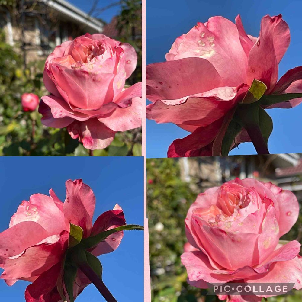 寒くなってきてなかなか開かなくなってきました。青空にピンク色が綺麗です。