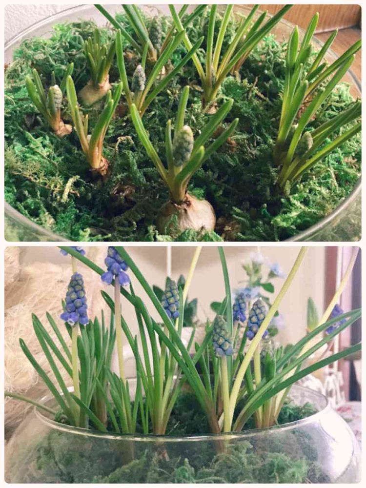 ムスカリの水苔栽培、こんな風になりました💙