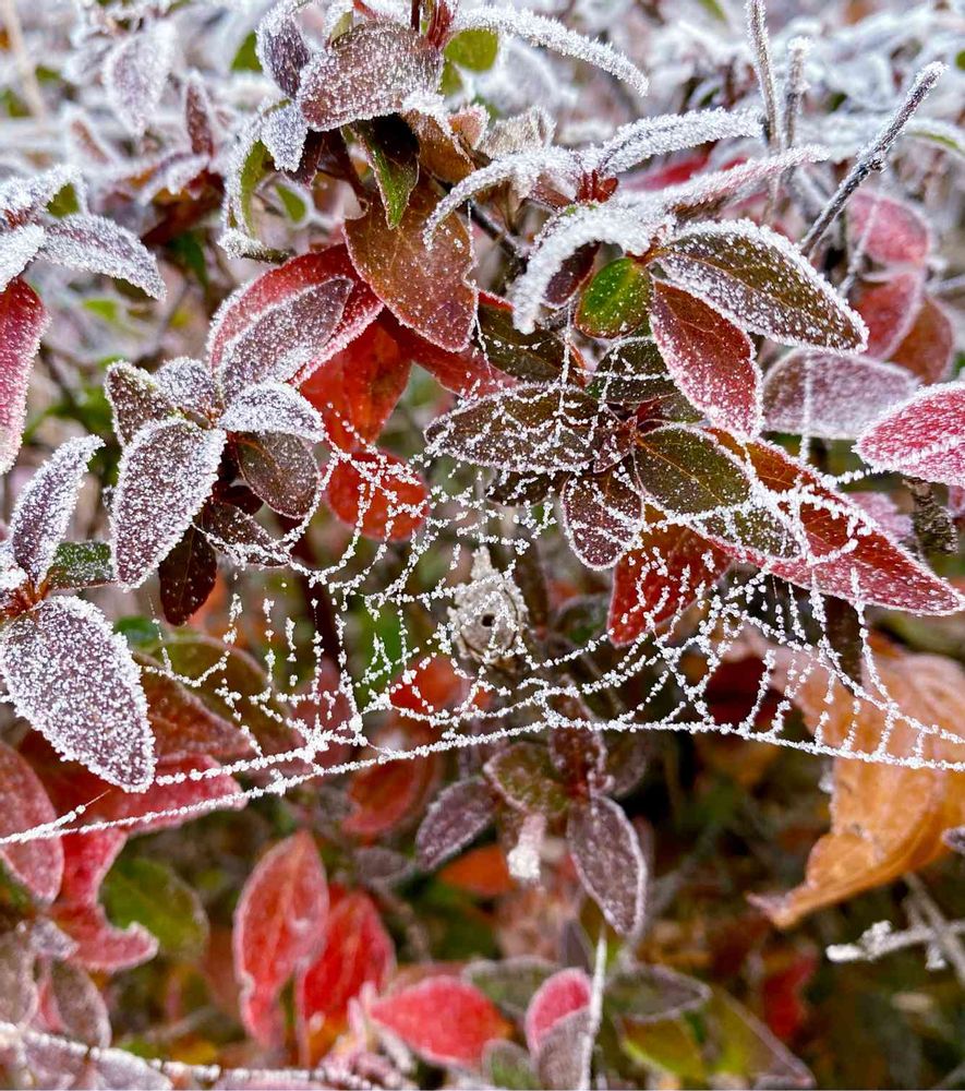 蜘蛛の巣🕷が!凍ったところを初めて見ました♪ 粉砂糖を振りかけたような〜💖