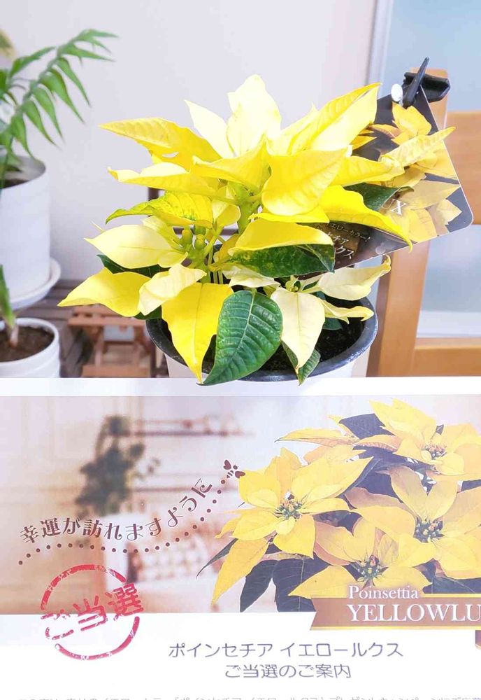 『ポインセチア イエロールクス』プレゼントキャンペーンに当選して、送ってもらいました💕