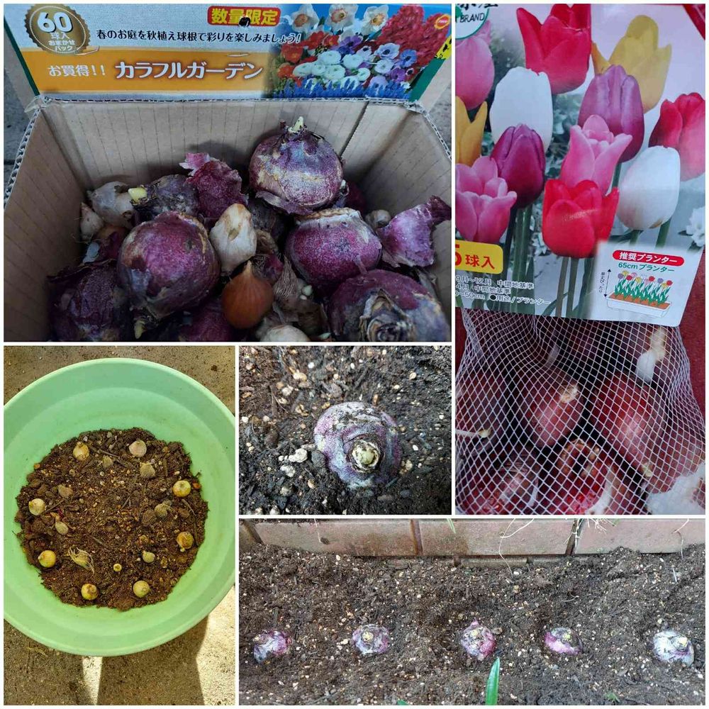秋植えよりどり球根とチューリップの球根🌷を植え付けたけど~袋の写真はイメージで何の花が咲くのか❓何色のチューリップ🌷なのか⁉️全くわからない😂