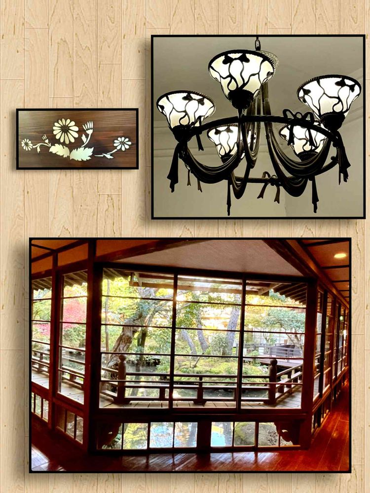 シャンデリアもレトロで雰囲気似合ってますね✨✨左は欄間の一部なのかしら…