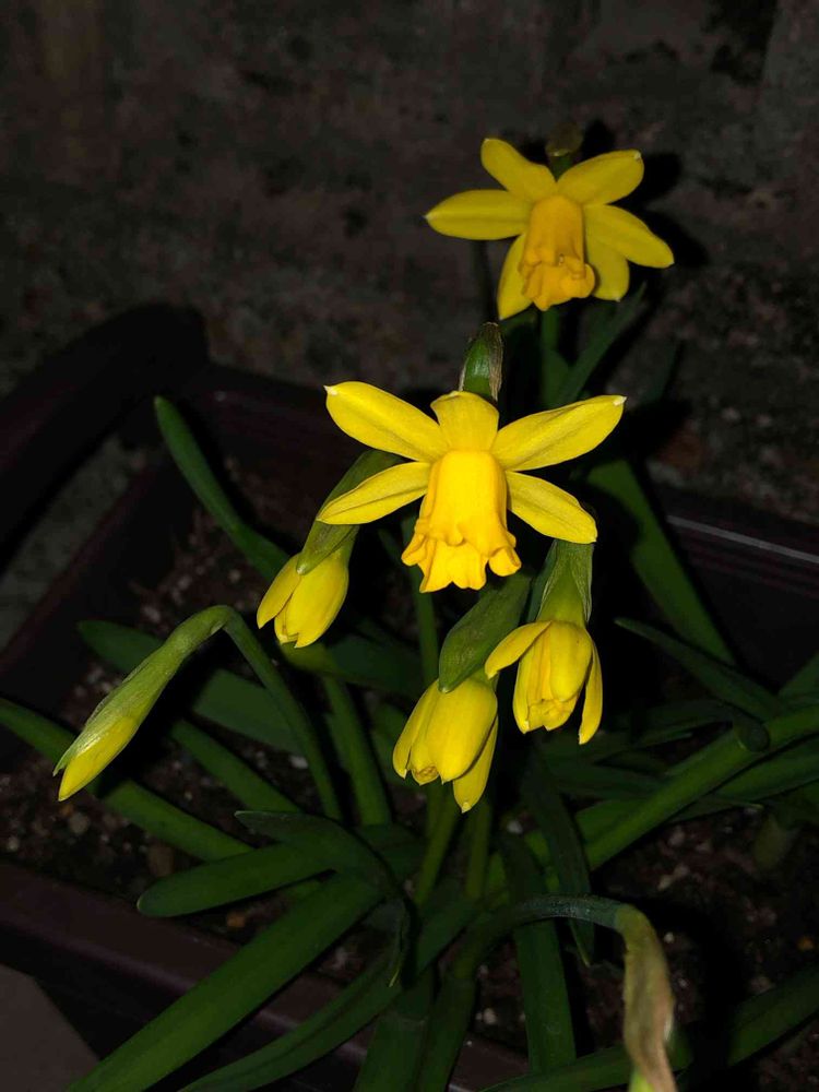 薄闇の中で、ミニ水仙🌼🌱出会いました( ◠‿◠ )