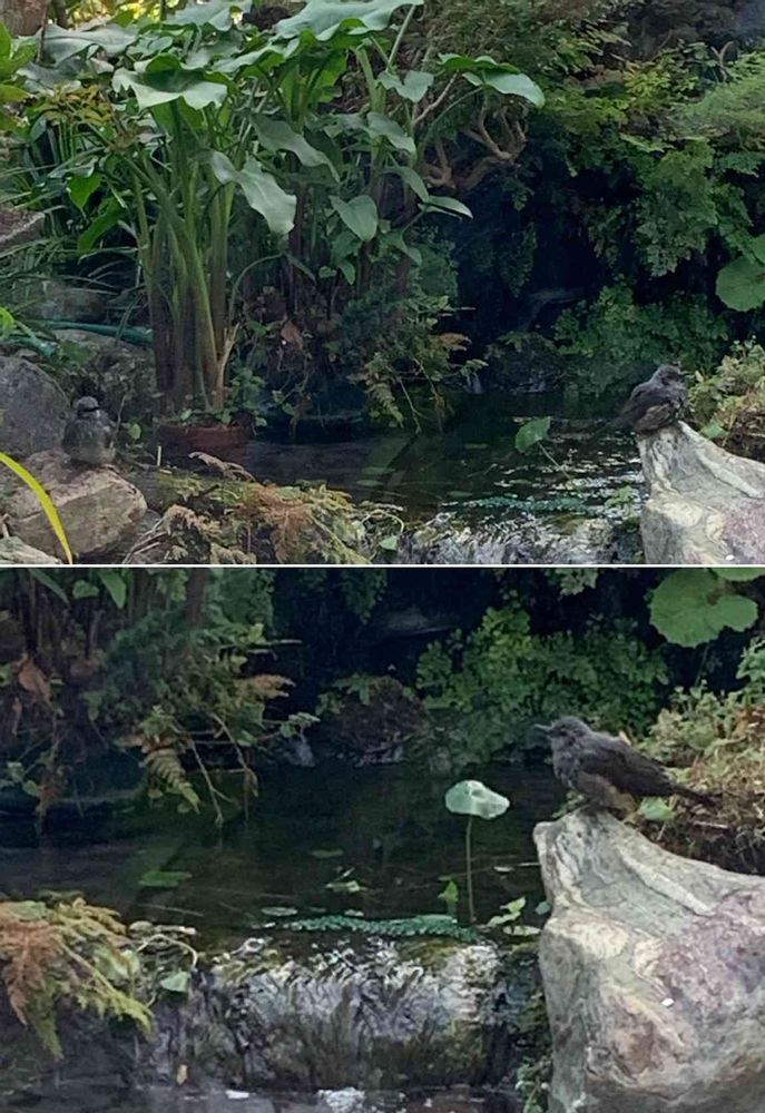 何度も飛び込んでバシャバシャ浴びて、最後はブルブル身体を振り ふっくら して飛び立ちました😊