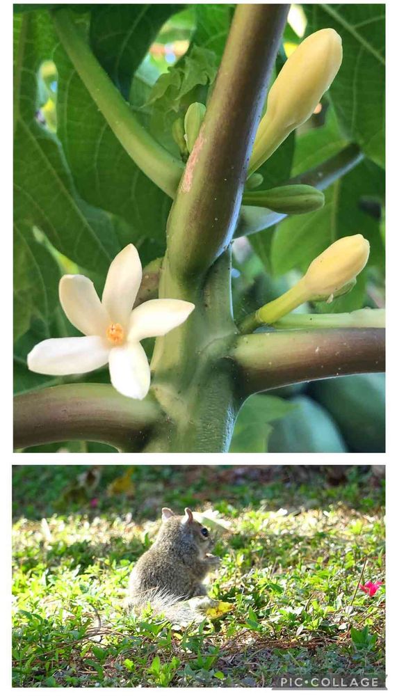 こんにちは✨✨💕🐸💕パパイヤのお花可愛いですね〜🥰リスちゃん🐿ホントいい仕事してます❣️😘