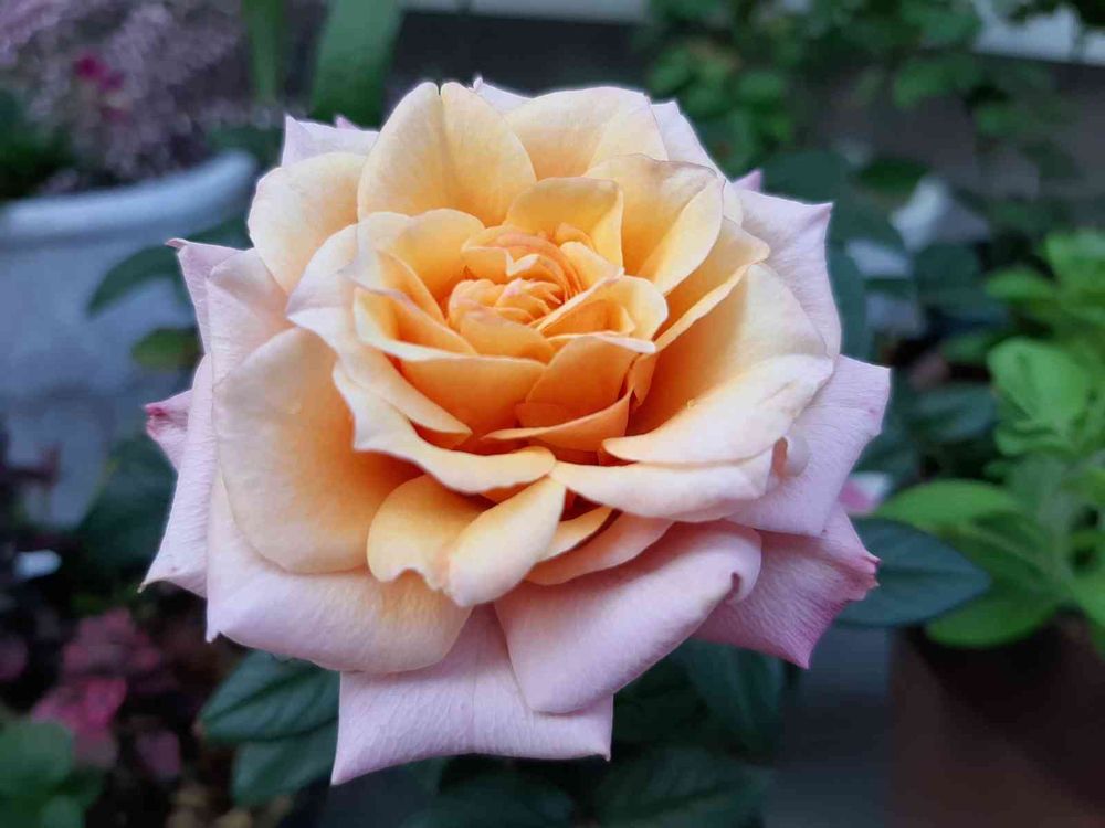 咲き始めのピンク色から、徐々にアプリコット色に変化します🍑
