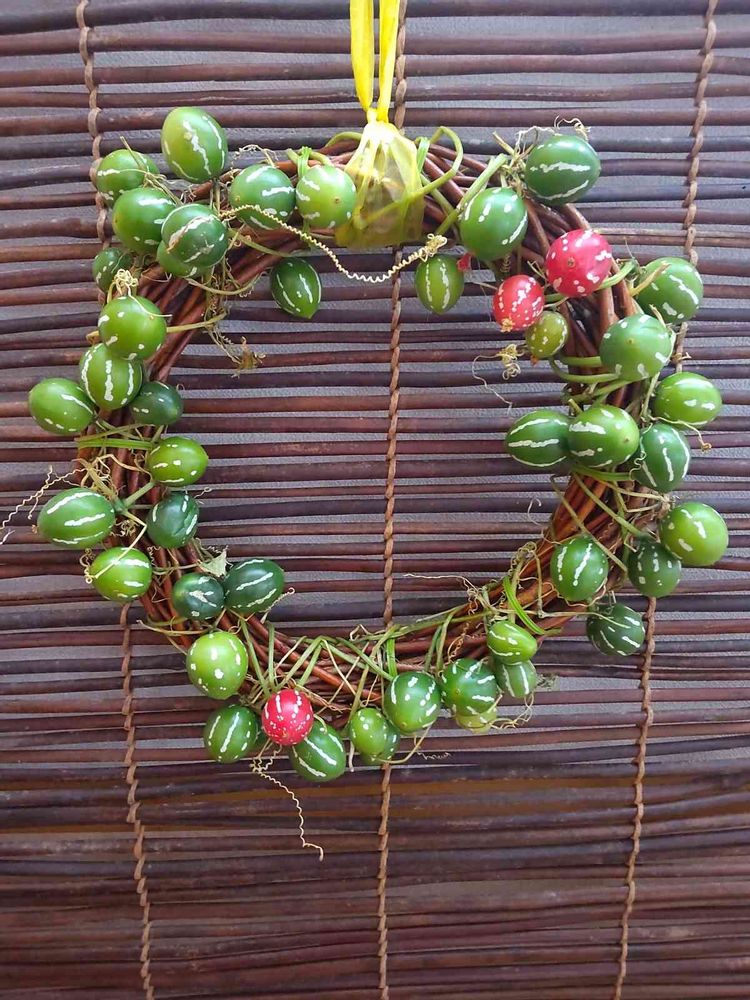 自分で初めて育てた沖縄スズメウリでリースを作りました。
