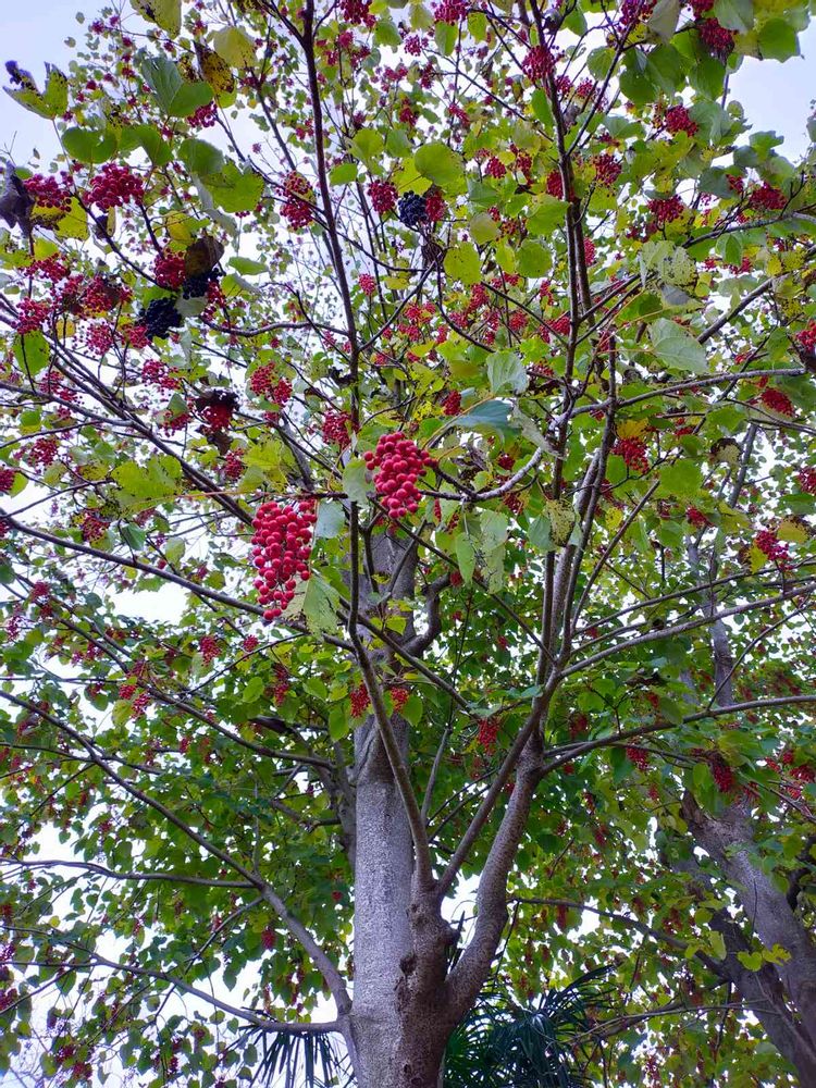 ❤️赤くて垂れる実の、イイギリ(飯桐が)近くにあるとは素敵ですね🤩