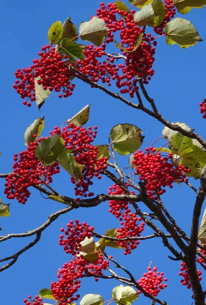 雲一つない秋の青空に、真っ赤な実が映えて、とても綺麗でした🤗🍒✴️。
