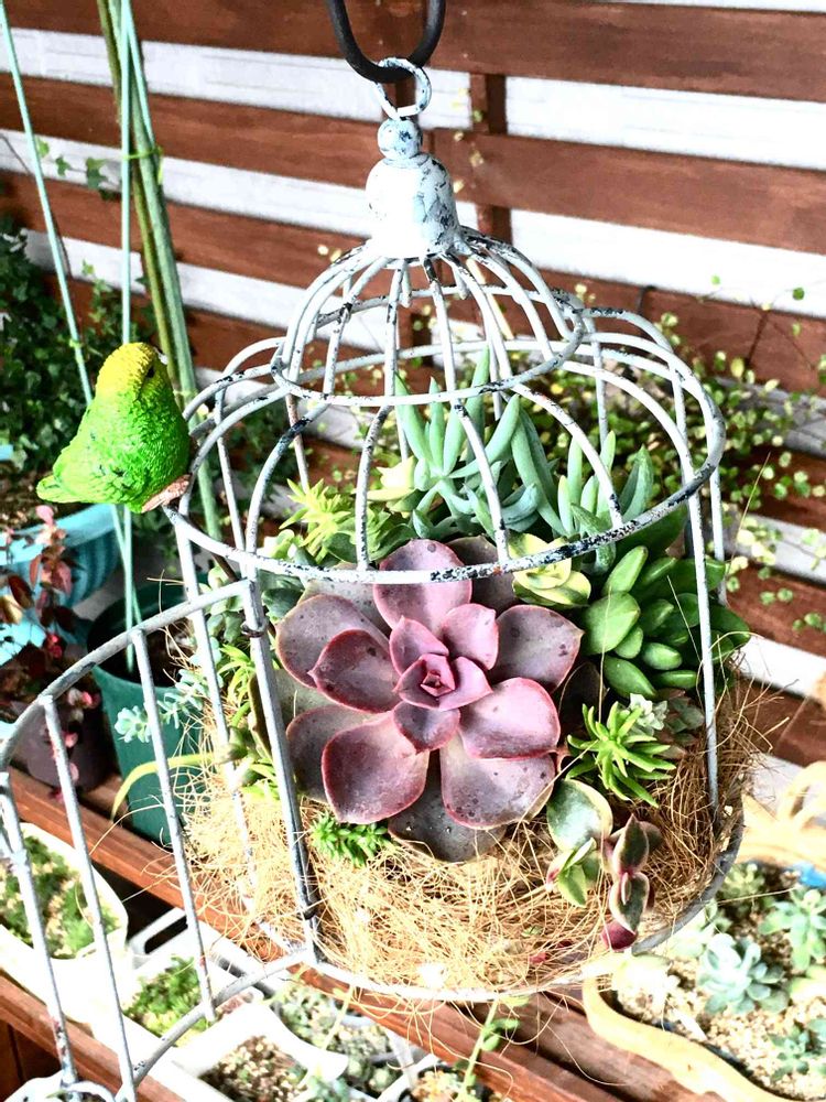 鳥籠に寄せ植えしました(ノ˶>ᗜ<˵)ノ💕