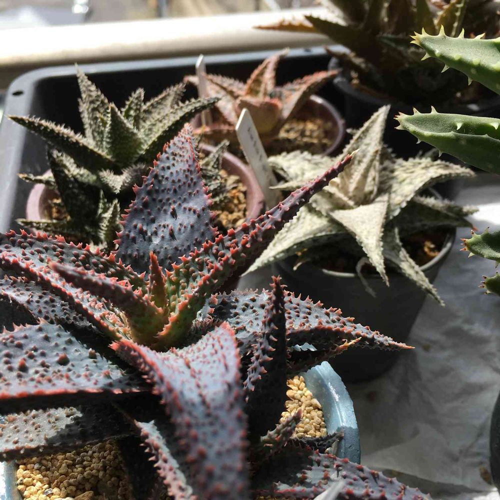 アロエは交配種も多いので、いろんな色があって、集めたくなりますね。