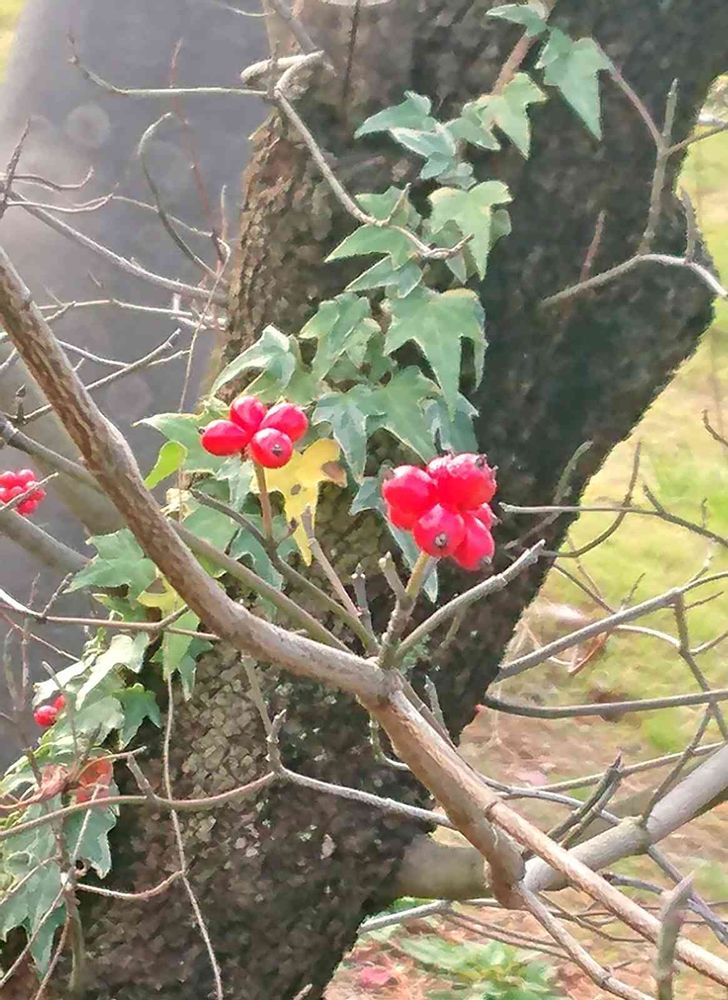 すっかり葉を落とした樹に赤い実だけが残ってます