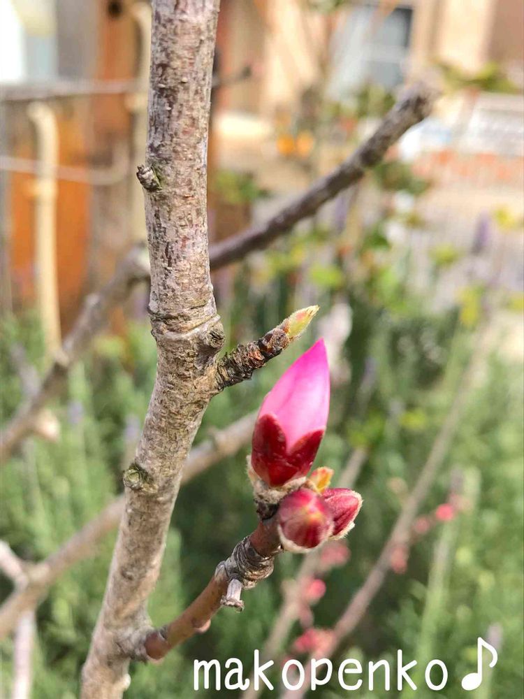 いつの間にやら、玄関前に植えているアーモンドの木に蕾がたくさん付いてました😍