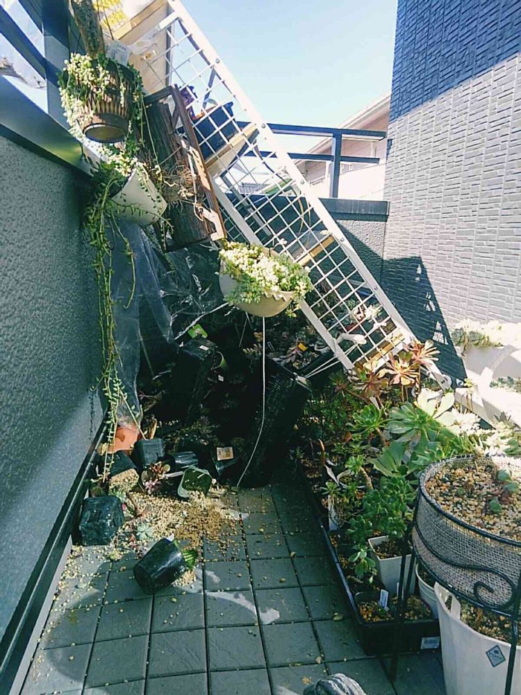 2階で大きな音がしたので見に行ったら多肉棚が倒れていーた😱