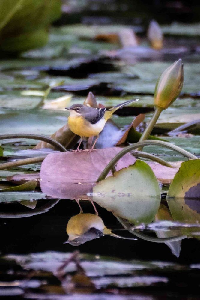 キセキレイさんは、水のあるところで飛び回っているセキレイのようで、黄色、緑がかってキレイです。スイレンとはあいしょがいいですね。
