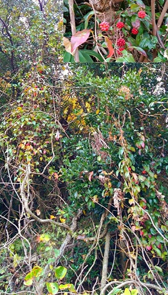 このサネカズラの立派な木は、去年この時期に実を採取している人を見かけました🍒