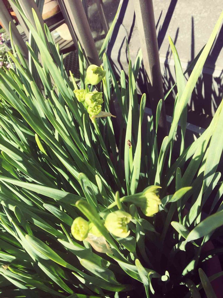 八重咲き水仙の花芽が上がってきました 植え替えて三年目 まだまだ 少ないですが 楽しみです