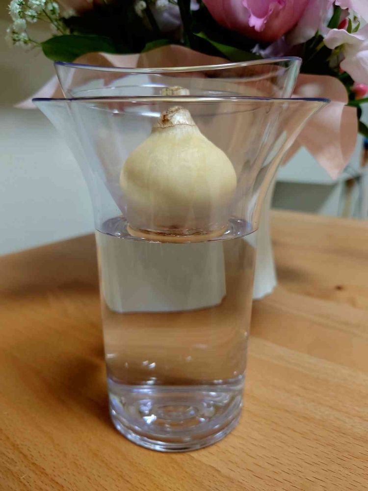どんな物でも、値札やラベルのシールをキレイに剥がさないと気が済まない性格が祟ってしまい…球根の皮を剥がしすぎて、ニンニクの様になってしまいました😅