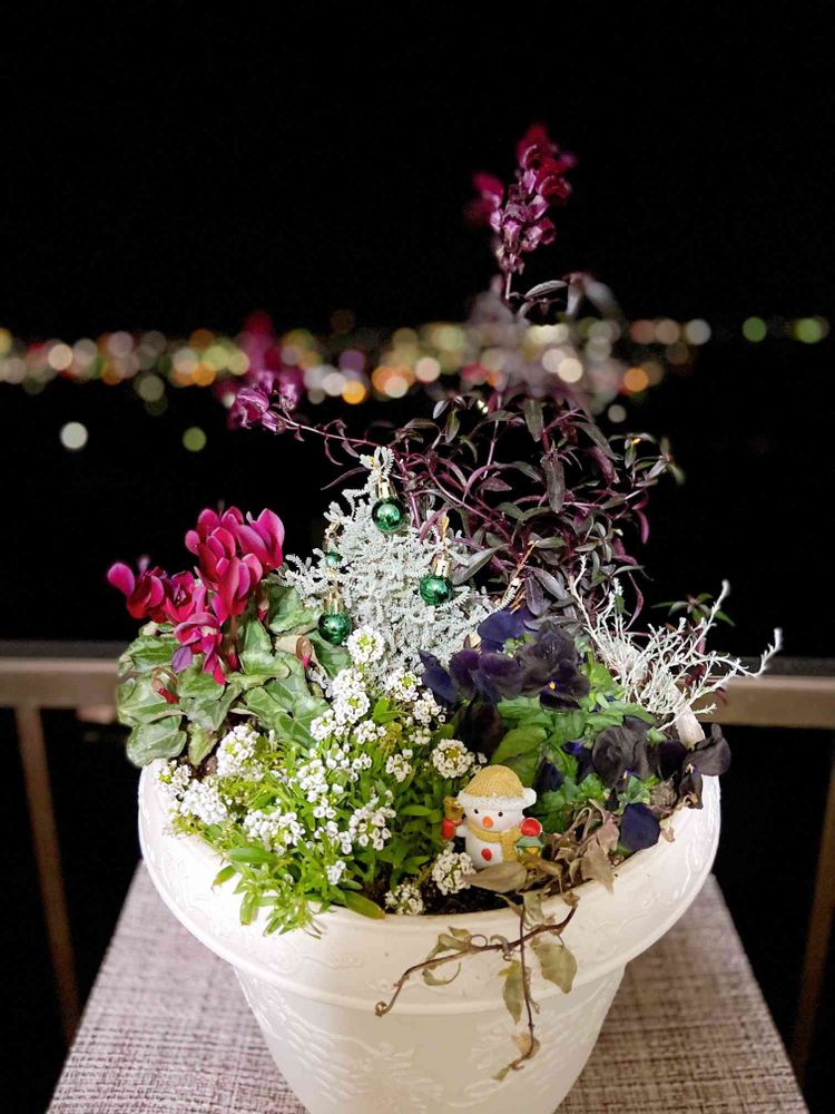 クリスマスの寄せ植えも、とっても素敵ですし、夜景がとても綺麗に見えるんですね〜😍