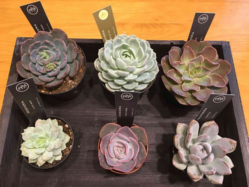黒いワインの木箱に並べたら 色合いシックで大人な多肉ちゃん