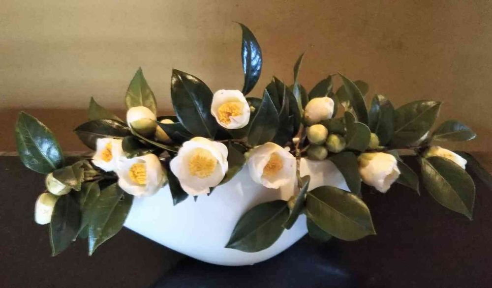 椿 1種 蕾や花の大小を バランス良く生けてありますね ✌️(◠‿・)—☆