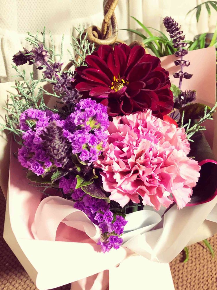 本人はお花には興味なかったりするんですが、贈り物にするのは好きみたいで、母の日や誕生日にはお花のアレンジメント、鉢植えをプレゼントしてくれたりします🎁💐
