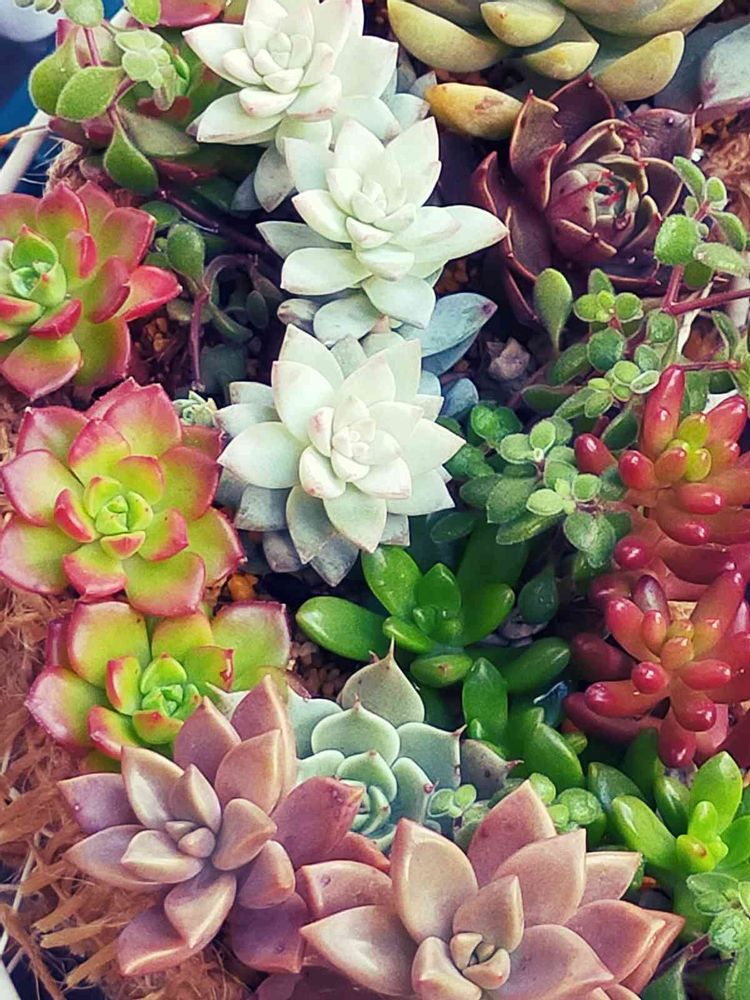 左上の赤と黄緑色の多肉の名前はなんて言うのでしょうか?