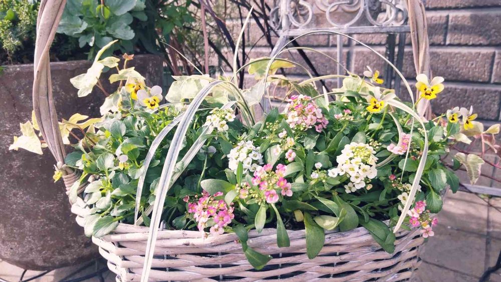 ビオラリトルコニーとアリッサムの寄せ植え