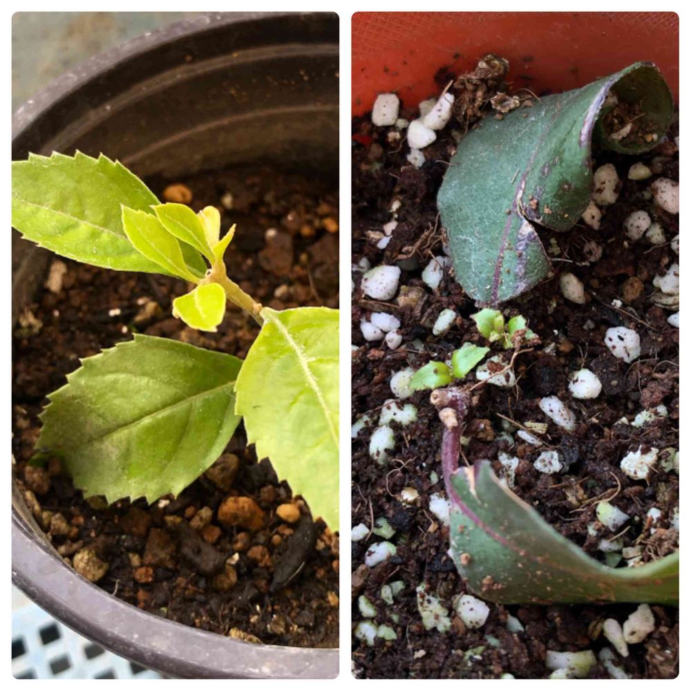 地味画像ですが、嬉しい楽しみな挿し芽を2つ。