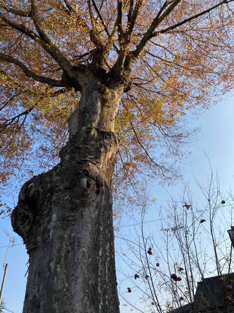 これもやっぱり捨てがたい⁉️大昔、多分雷でも落ちて、片側だけ生き残った感じ⁉️そもそもケヤキの紅葉も好きです‼️なんてムクノキかも知れませんが・・