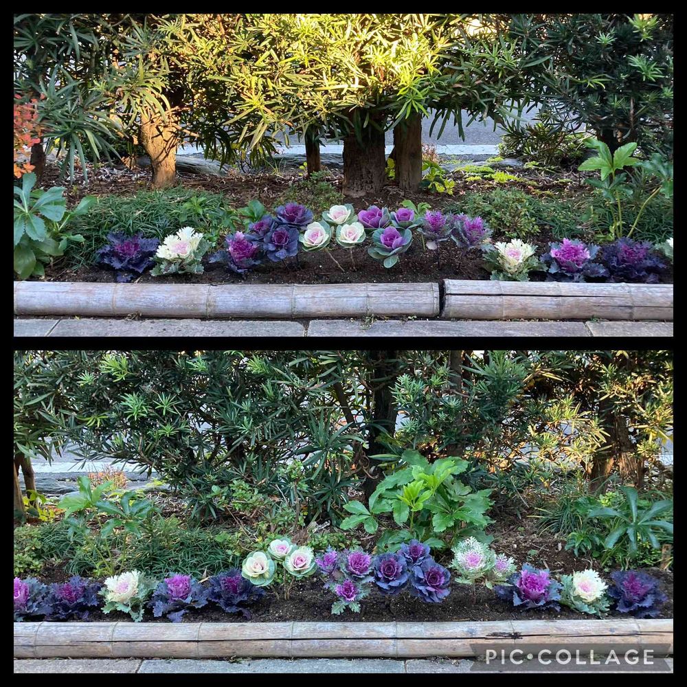昨日群馬県庁の花品評会の即売会で買った葉牡丹エール