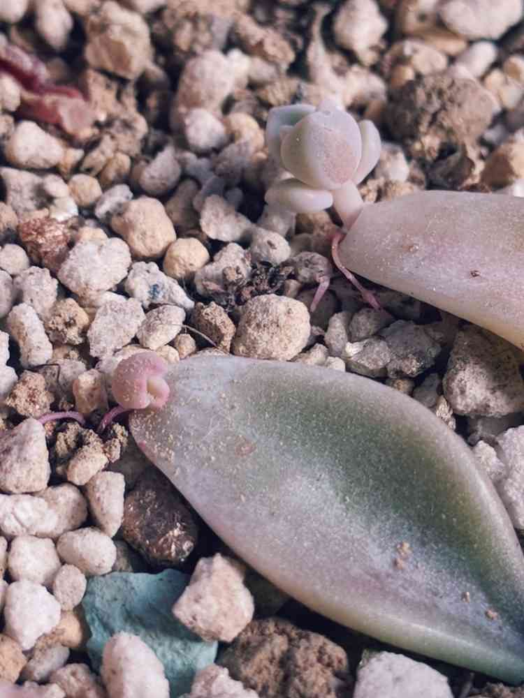 左の葉挿しからのベイビーが丸っとしていて、どんな生長するのか楽しみです…♡