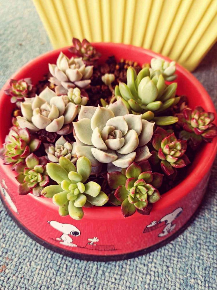 おはようございますm(_ _)mお気に入りのSNOOPY缶に去年挿してた😊色々多肉ちゃんです!大きくなって来ました👀見てて飽きないです!!可愛い⟵(๑¯◡¯๑)