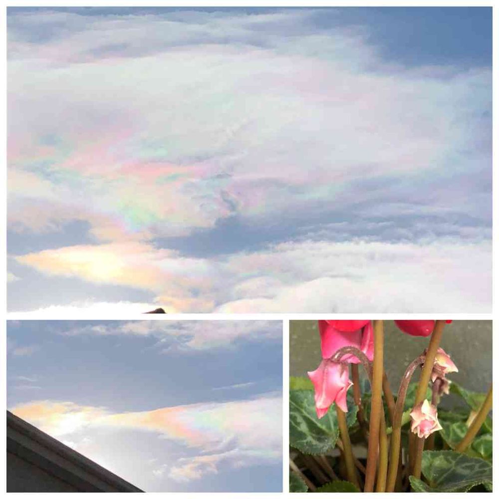 まってこんな雲見たことも聞いたことも無い(゚ロ゚)💥💥虹色?!