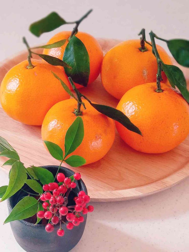 なんてきれいなみかん🍊たち。しかも葉付。南天もとても素敵でみかん振興会のポスターのようです❣️