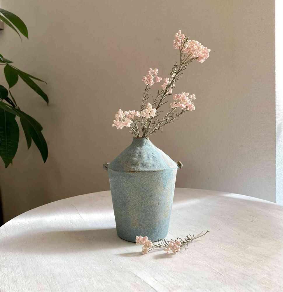 私的にかなり、ツボってる作家さんの花器なんですよ。ギリシアとかトルコとかオリエンタルな雰囲気のものを作ってる方なのですよ。色とか形とか雰囲気が大好き✨何を合わせたら素敵くなぁと考える時間がまた良いですよね☺️