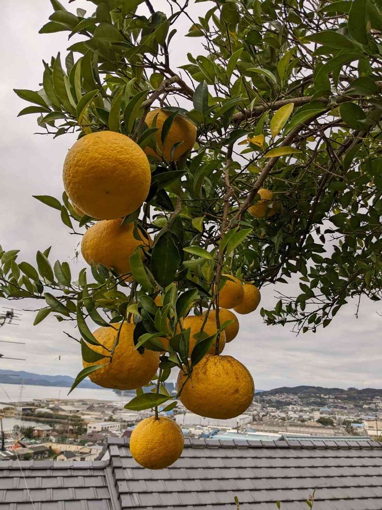畑にて、夏みかんが、沢山!実っています。重そう!来年の春まで、大丈夫かなぁ~少し減らしてあげようか?😨😱😅🌞🙋