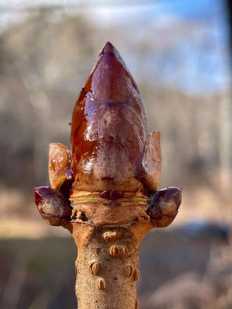 トチノキの冬芽は、春になるまで ずっとベタベタでーす😆✌️