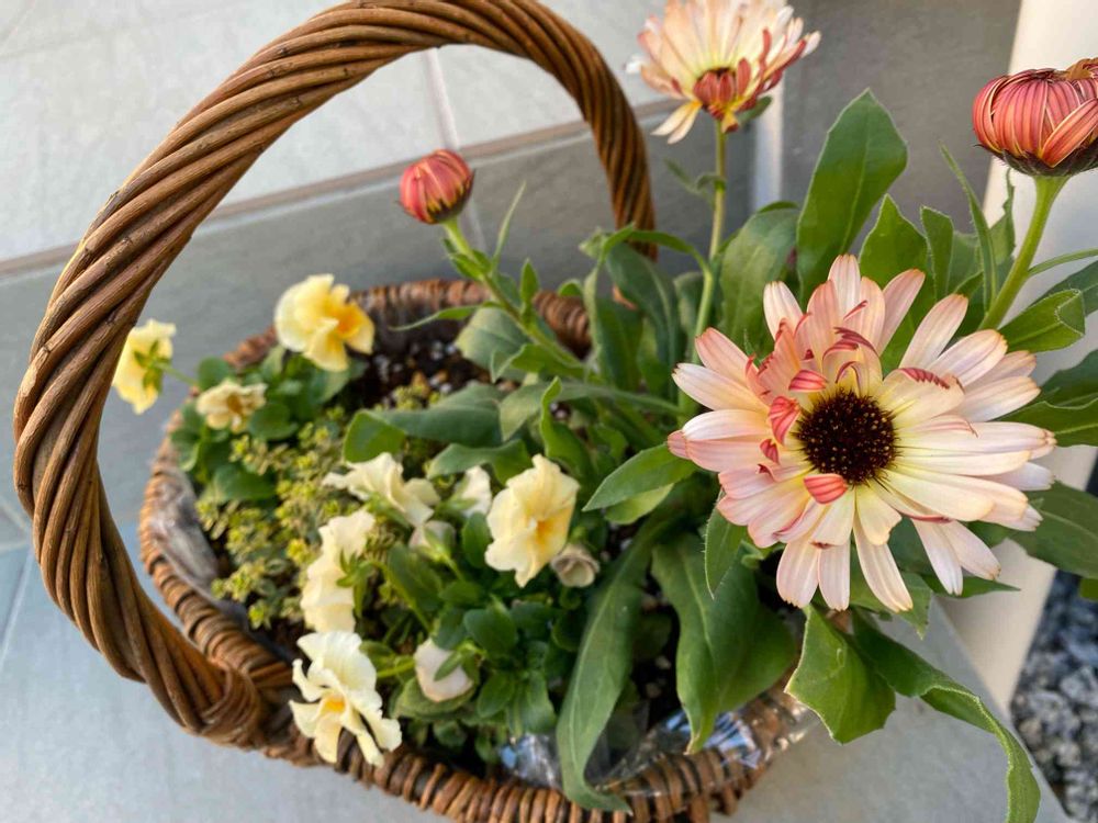 かごに植え直し。かごに植えるとそれだけでおしゃれ風にみえる。。