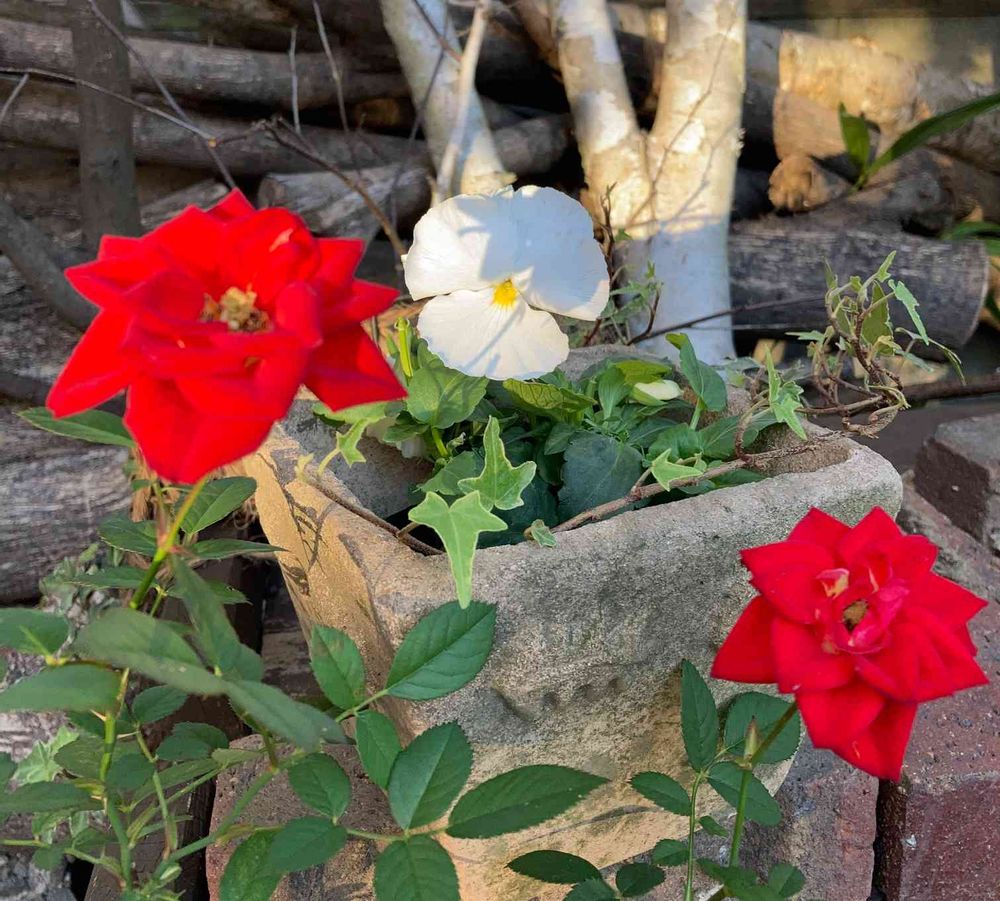 🎼真っ赤なバラ🌹と白いパンジー✨